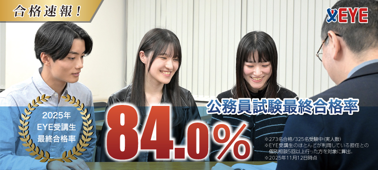 【2025年度 最終合格率は84.0%!】公務員試験予備校EYE が選ばれる理由