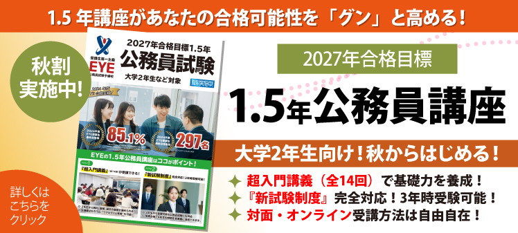 【大学2年生向け!超人気講座!】2027年合格目標 ≪ 1.5年公務員講座 ≫のご案内