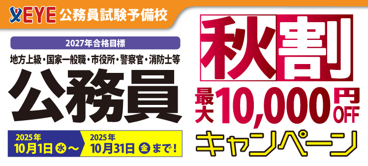 【受講料最大10,000円OFF!】大学2年生向け!1.5年公務員講座 秋割キャンペーン(2025年10月31日まで)